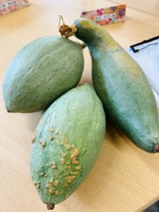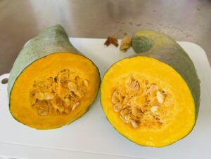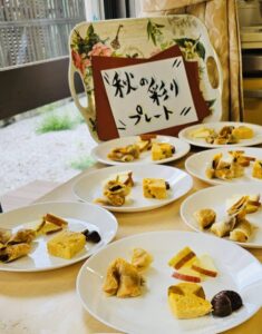 今日は、先日スタッフが持ってきてくれた飛騨カボチャを使って、秋の彩りプレートを作りました♪
