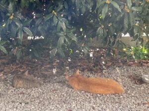 キンモクセイの木の下で、猫ちゃん親子がお昼寝していました(*^-^*)