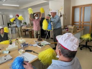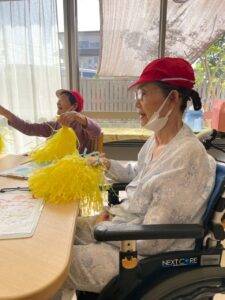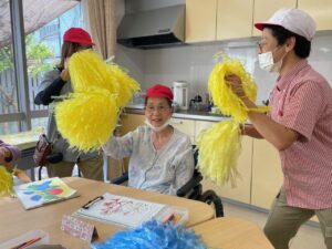 他の利用者様も、ポンポンを振りながら、「赤頑張れ!白頑張れ!」等の掛け声を一生懸命出してくれました(^^)/