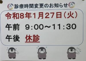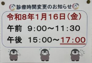 耳鼻咽喉科診療時間変更のお知らせ 16日(金) 27日(火)ご確認ください。