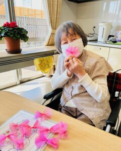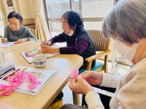 3.4月の制作物の花びら作りも皆さん集中して取り組んでいます
