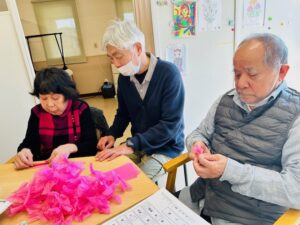 3.4月の制作物の花びら作りも皆さん集中して取り組んでいます