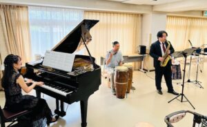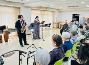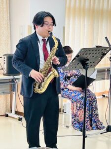 2026.04.29 4月音絵コンサート♬ デイサービスほほえみ 今月の音絵コンサートは、 アルトサックス奏者の松元翔太郎さんをお迎えしてのコンサートでした♪ みなさんうっとり 素敵な音色の世界に引き込まれました˖✧◜✧˖° 最後は、朧月夜♪を全員で熱唱(*’▽’) 次回は6月の開催です! 音絵さんとSAX🎷コンサート🎶 前の記事 ナイス笑顔賞(^^♪ 次の記事